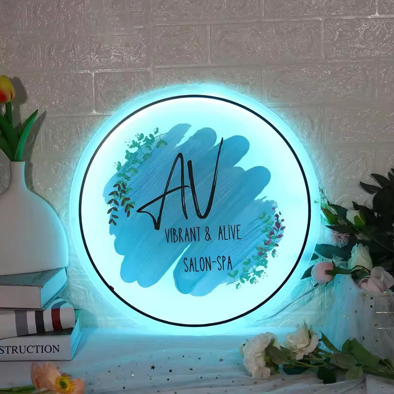If you need a colorful logo, you can choose UV Fullcolor Print + Metal Edge Acrylic Backlit Sign. UV printing can restore the color and details of your logo very well. UV Print is suitable for complex logos.