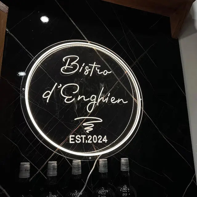 The engraving machine engraves your logo on the acrylic, and the edge is illuminated by neon lights. It is much cheaper than making all neon lights, and can engrave very small text and patterns.